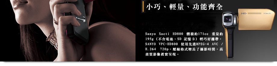 Xacti HD800 相容 32GB SDHC記憶卡。雖然是袖珍小巧的體積,但是能拍攝總時間大約7小時41分鐘。
