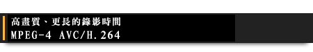 H.264格式紀錄高畫質影像,可增長錄製時間。