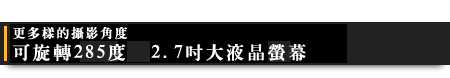 顯示器可285度旋轉,所以可使用各種不同的角度拍攝,不論是自拍或使用低角度拍攝寵物等等。